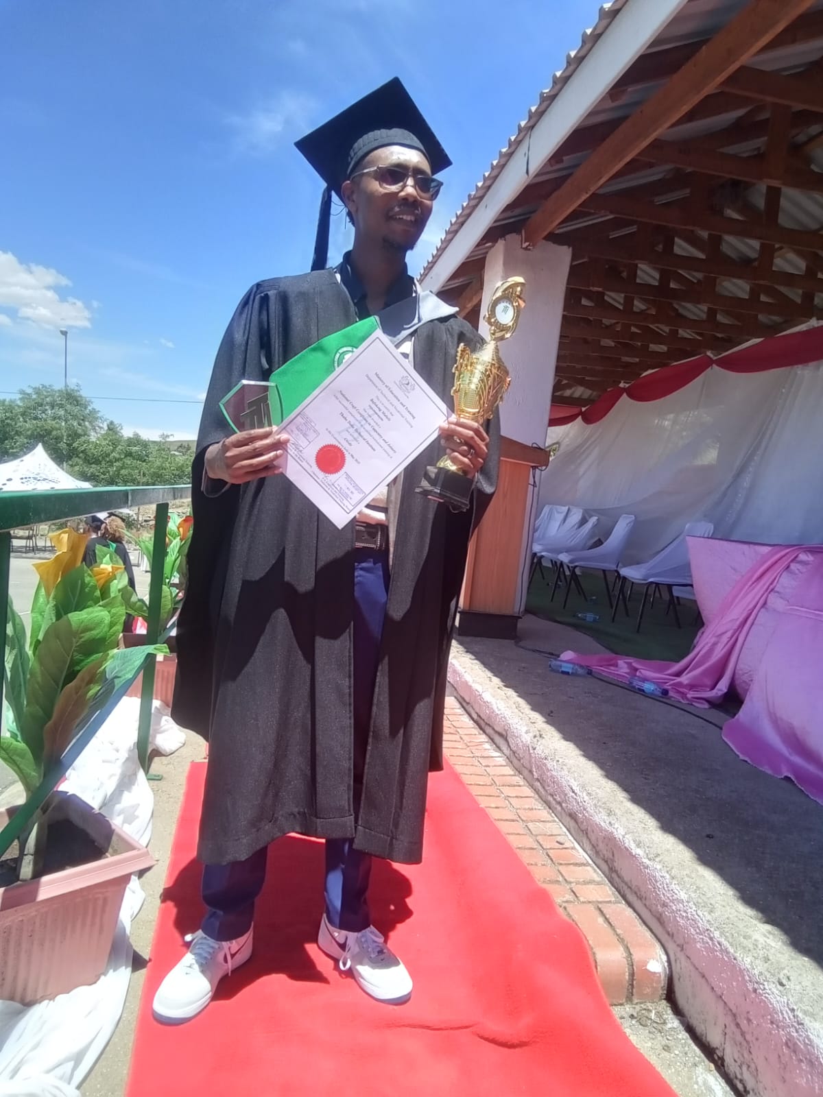 During the ceremony, Bafokeng Maliele, from Mohlanapeng, a student from the Carpentry and Joinery class, received two awards: one for being the best student in her class and another for discipline.